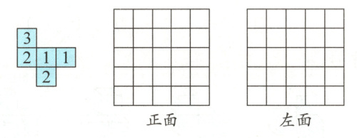 1. 下面左图是一个立体图形从上面看到的形状,图中的数字表示该位置正方体的个数。请你在方格纸上画出这个立体图形从正面和左面看到的形状。(4分)