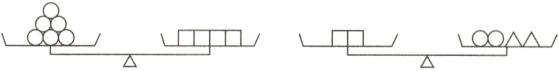 2. 根据下图中两个天平的平衡状态,可以判断出○的质量是△的( )倍。