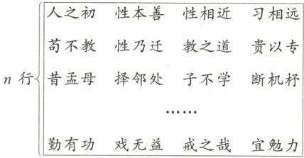 4. 新趋势 学科融合 如图所示,n行文字中被省略的字有( )个。