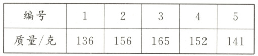 6. 一箱苹果共有40个,从中任意取5个分别称一称,结果如下表。取出的这5个苹果,平均每个重( )克,这箱苹果大约重( )千克。