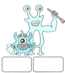 #### 三、找出含有与例词画线部分相同发音的单词,写在横线上,并根据描述在方框中写出小怪物的名字。(7分)