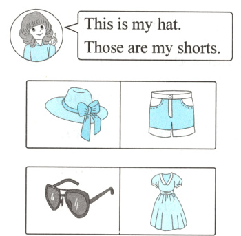 (三)Amy想去新加坡参加夏令营,帮她一起整理衣物吧!看图,依照示例写2句话。(10分)