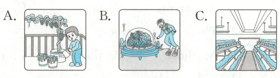 Can we plant under the water? Look at Nemo’s Garden in Italy. It is the world’s first underwater farm. People put big plastic bubbles(塑料球) under the water and plant vegetables,fruit and flowers in them. That’s amazing!