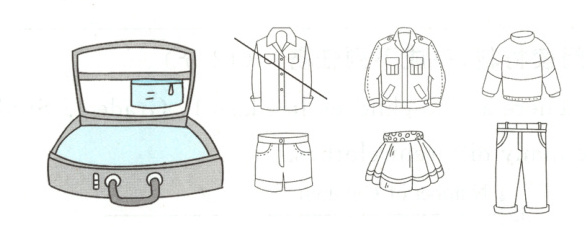 ### 四、听录音,仿照例子划去这次旅行不需要的衣服,并给所需的衣服涂色。(10分)