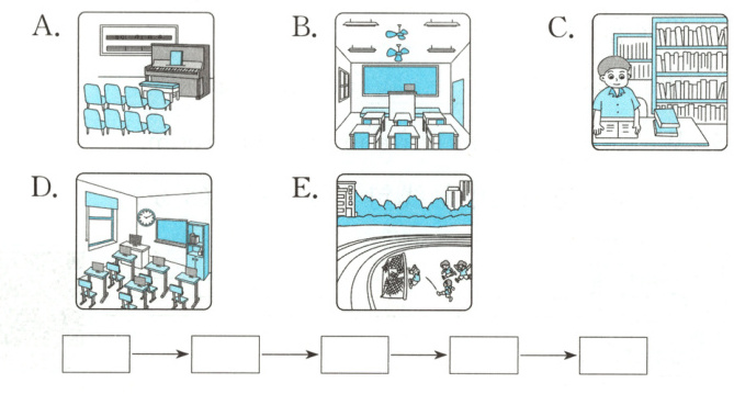 二 听录音,按照参观顺序,完成路径图。(10分)