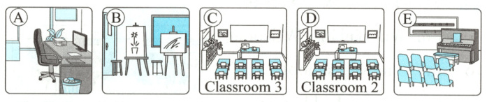( )3. A. teachers’ office B. computer C. art room