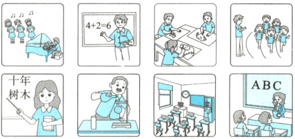 三 听录音,圈出你所听到的课程的图片。(6分)