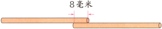2. 将两根5厘米长的小棒按如图所示的方式固定在一起,现在的小棒长( )毫米。(4分)