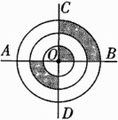 9. 如图,直线AB,CD互相垂直相交于点O,以O为圆心,半径分别为1、2、3作三个同心圆,那么图中阴影部分的面积为________.