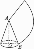 6. 如图,已知圆锥的母线$AB = 5$,底面半径$r = 2$,求圆锥的侧面展开图扇形的圆心角。