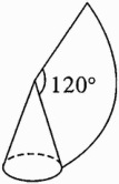 5.(2023内江中考)如图,用圆心角为$120^{\circ}$,半径为6的扇形围成一个圆锥的侧面(接缝忽略不计),则这个圆锥的高是______。