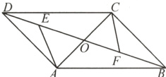 11. 如图,在□ABCD中,对角线AC,BD相交于点O,分别过点A,C作AE⊥BD,CF⊥BD,垂足分别为E,F,AC平分∠DAE.