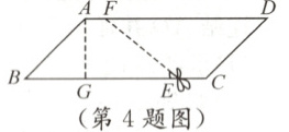 4. 如图,四边形ABCD是一张平行四边形纸片,其高AG = 2 cm,底边BC = 6 cm,∠B = 45°,沿虚线EF将纸片剪成两个全等的梯形,若∠BEF = 30°,则AF的长为( )