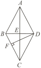 ∵四边形ABCD是菱形,$DF\perp BC$,${S}_{菱形ABCD}=BC\cdot DF=\frac{1}{2}AC\cdot BD$,