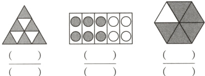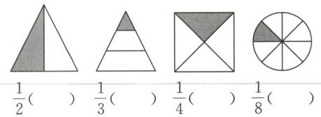 (3)平均分成4份,3份是这堆桃子的$\frac{()}{()}$,分数单位是$\frac{()}{()}$,有( )个这样的分数单位。