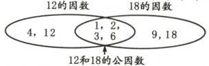 (1)先找出12和18的因数、公因数,再填入圈图中。