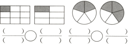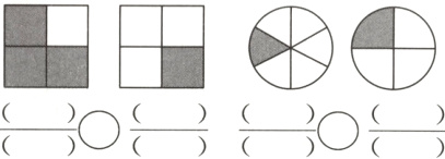 $\frac{3}{4}>\frac{1}{4}$ $\frac{1}{6}<\frac{1}{4}$ $\frac{1}{9}<\frac{1}{6}$ $\frac{2}{5}<\frac{3}{5}$