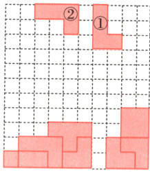 将图①先绕左下顶点顺时针旋转90°,再向左平移6格,最后向下平移5格。将图②先绕右上顶点逆时针旋转90°,再向右平移1格,最后向下平移8格。(答案不唯一)