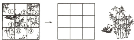 5. 左图是被打乱的9张图,怎样才能还原成右图?在中间图中填入序号。