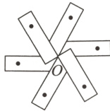 这个图案是由一个一侧带圆点的长方形绕点O经过旋转得到的,每次旋转60°,旋转了5次。