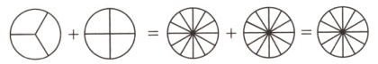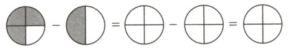 $\frac{5}{12}\bigcirc\frac{1}{12}=\frac{1}{2}$ $\frac{24}{36}\bigcirc\frac{18}{36}=\frac{1}{6}$