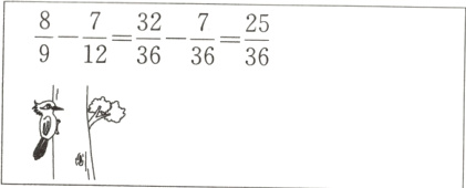 $\frac{1}{2}+\frac{2}{3}=\frac{3}{6}+\frac{4}{6}=\frac{7}{6}$ $\frac{8}{9}-\frac{7}{12}=\frac{32}{36}-\frac{21}{36}=\frac{11}{36}$