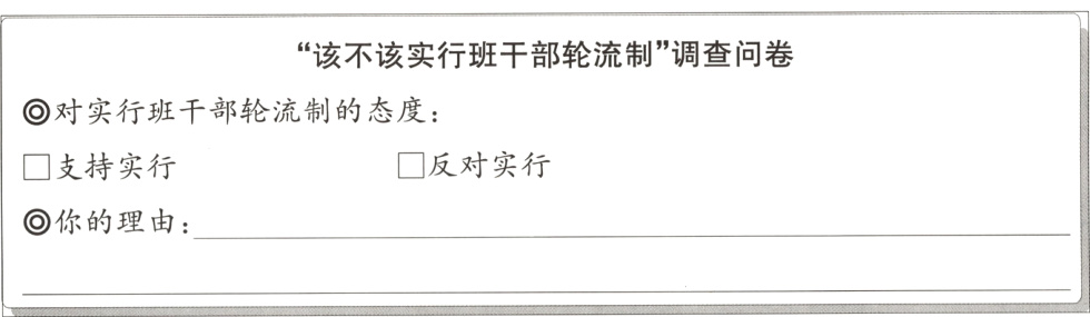 示例二:反对实行 实行班干部轮流制会导致班干部队伍不稳定,可能会分散同学们的精力,影响学习。