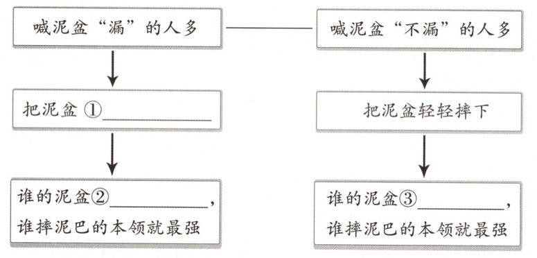 3. 【新题型】读第③段,根据摔泥盆游戏的不同玩法,补充思维导图。(6分)