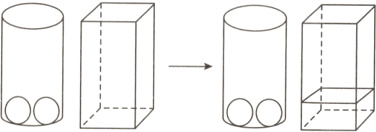 6. [推理探究]如图,有一个圆柱形水杯和一个与之底面积和高均相等的长方体水杯,圆柱形水杯的底面直径是8 cm,高是17 cm。先把两个一样的铁球放在圆柱形水杯中,再把长方体水杯装满水后将水倒入装铁球的圆柱形水杯中,圆柱形水杯装满后,长方体水杯中剩余水的水面高度为5 cm。每个铁球的体积是( )cm³。