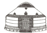 4. 下图中的蒙古包可以看成由上半部分的圆锥和下半部分的圆柱组成。上半部分的圆锥的底面周长是18.84 m,高是1 m,下半部分的圆柱的高是2 m。你知道这个蒙古包内的空间有多大吗?(蒙古包的厚度不计)