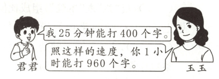 1时 = 60分 400:25 = 960:60 玉玉说得对