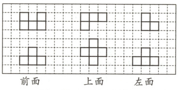 6. [思维拓展]画一画。(在方格纸上分别画出从前面、上面和左面看到的图形)