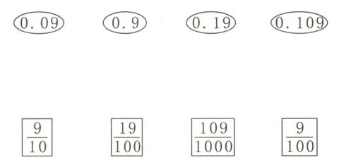 $\frac{2}{10}$ $\frac{6}{10}$ $\frac{9}{10}$ 0.2 0.6 0.9