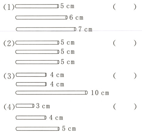 2. 在能摆成三角形的各组小棒后面画“√”。
