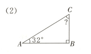 (2)$\angle C = 180^{\circ}-90^{\circ}-32^{\circ}=58^{\circ}$