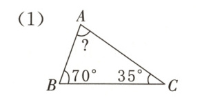 (1)$\angle A = 180^{\circ}-70^{\circ}-35^{\circ}=75^{\circ}$