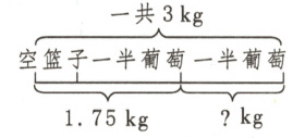 先求拿出的一半葡萄的质量,即3 - 1.75 = 1.25(kg),再求这些葡萄的质量是1.25 + 1.25 = 2.5(kg),最后求出的空篮子质量是3 - 2.5 = 0.5(kg)。