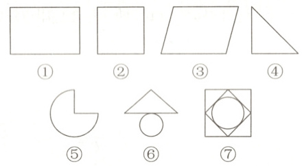 (2)下面图形中,只有1条对称轴的是( ),有2条对称轴的是( ),图形⑦有( )条对称轴。