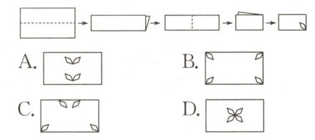 (2)像下面这样把一张长方形纸连续对折两次后剪去一部分,得到的图案是( )。