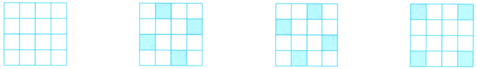 4. 根据后三幅图的变化规律,在第一幅图中画出涂色部分。