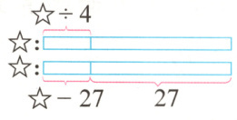 ☆÷4 = ☆ - 27,求☆表示几。乐乐画的图如图,