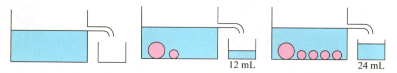 如图,亮亮设计了一个实验来测量一个大球和小球的体积。大球的体积是( )$cm^{3}$,小球的体积是( )$cm^{3}$。