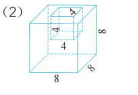 体积:$8\times8\times8 - 4\times4\times4 = 448(\text{cm}^3)$