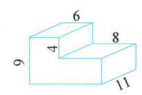 @@$9×11×(6 + 8) - 4×8×11 = 1034(cm^{3})$