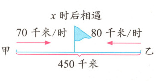 (2) $70x + 80x = 450$ $x = 3$
