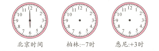 与北京时间相比,早1小时记为 $+$ 1时,晚1小时记为 - 1时。请根据提示,画出其他地区的时间。