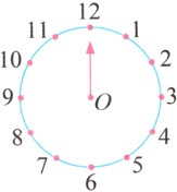 3. (1)指针从“12”绕点O顺时针旋转90°到“( )”。