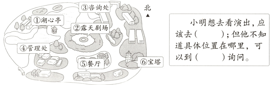小明想去看演出,应该去( );但他不知道具体位置在哪里,可以到( )询问。