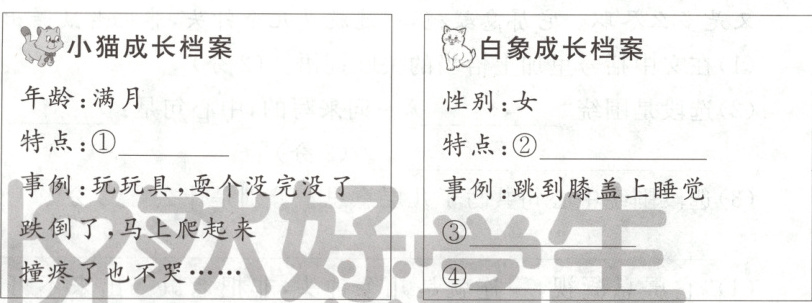 (1)[新题型]阅读上面两篇关于猫的选文,完成下面的“成长档案”。(8分)
