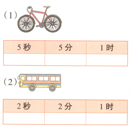 (3)5秒√ 解析:根据生活经验可知,骑自行车行驶1千米大约4到5分。公交车比自行车快,行驶1千米大约2分左右。飞机最快,行驶1千米只需5秒左右。
